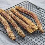 Please keep an eye on your dog while eating to prevent swallowing large pieces by mistake.