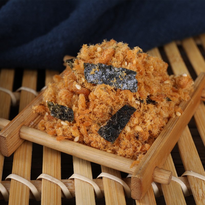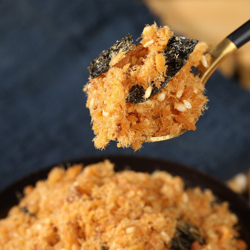 The main ingredients of sesame nori floss are lean meat (usually pork or chicken), sesame seeds and nori. These ingredients together constitute the basic texture and flavor of the meat floss.